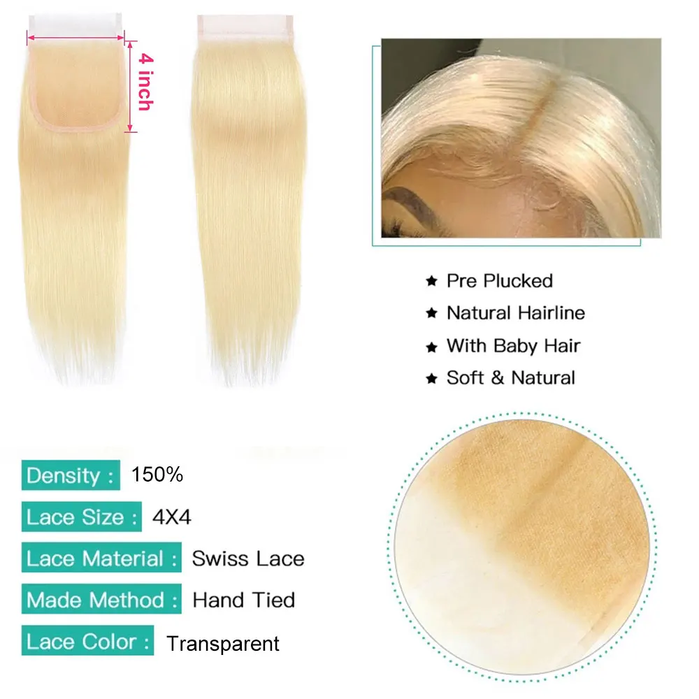 13x4 Blonde Human Hair Lace Frontal Closure Pre Plucked Transparent Lace Frontal Natural Hairline 4x4 613 Lace Closure