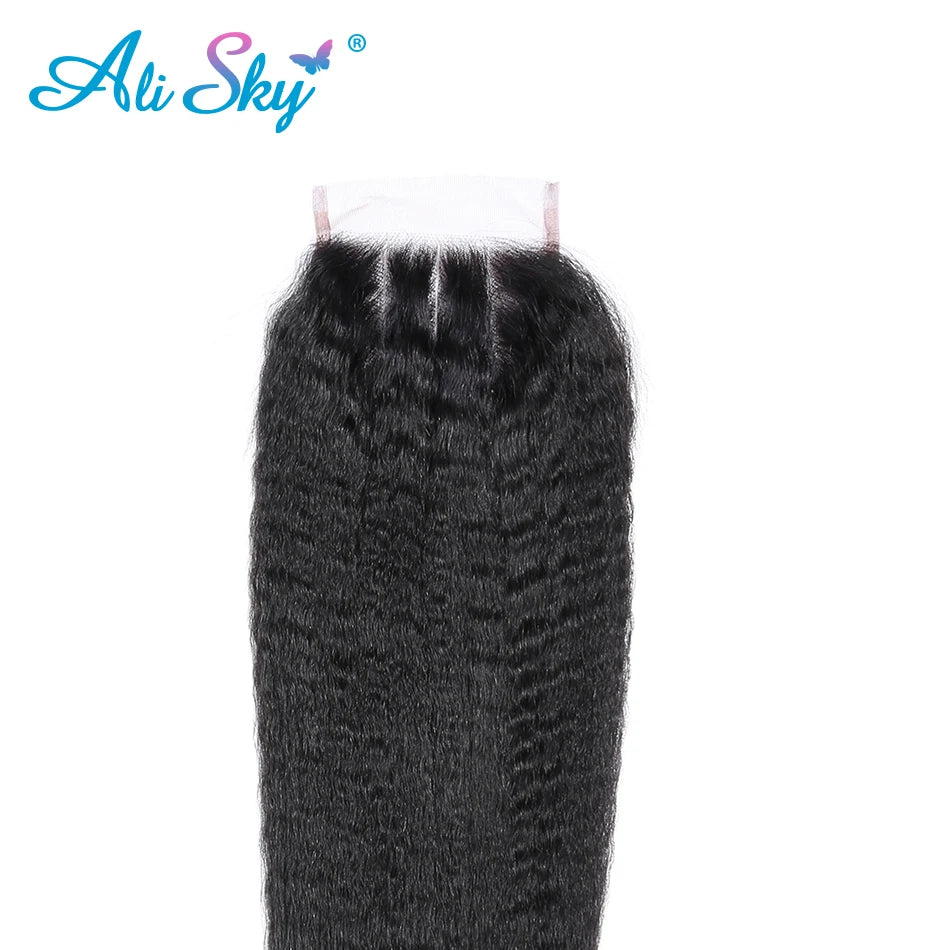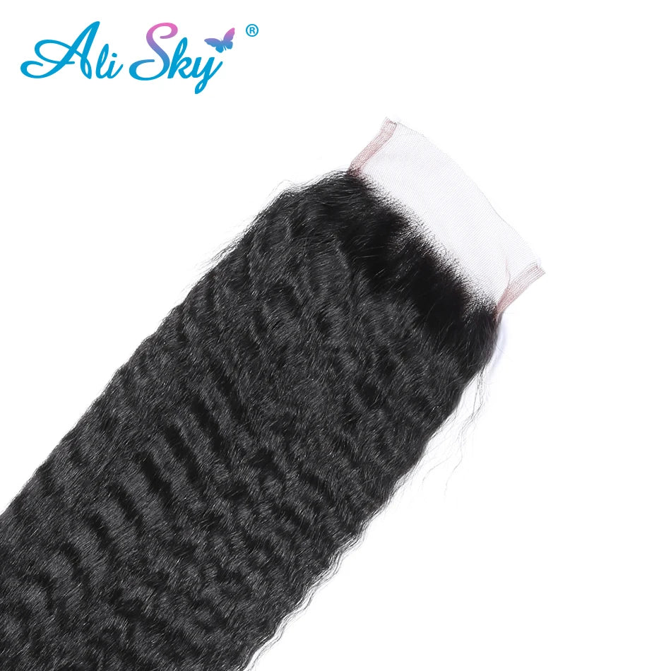 Alisky Hair Peruvian Closure Kinky Straight Closure 5x5 Lace Closure Pre Plucked 8-22Inch Free/Middle/Three Part With Baby Hair Remy Hair Closure