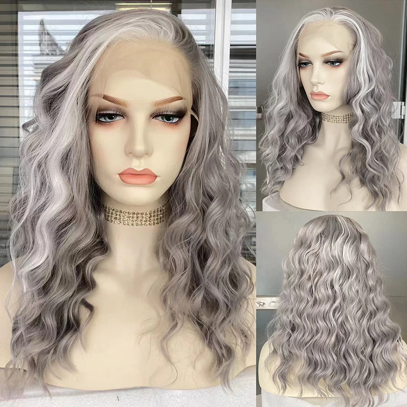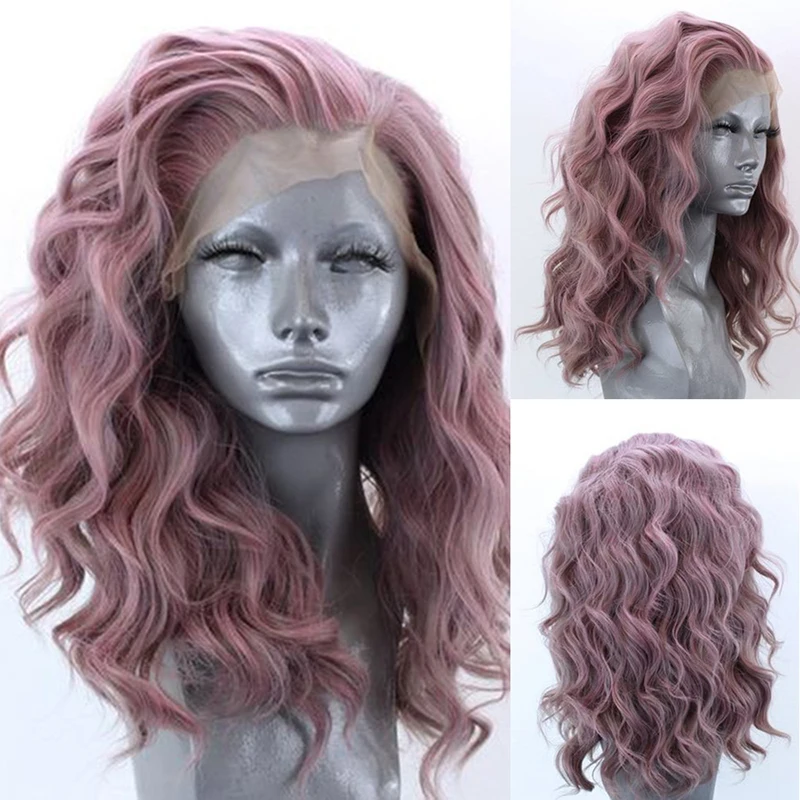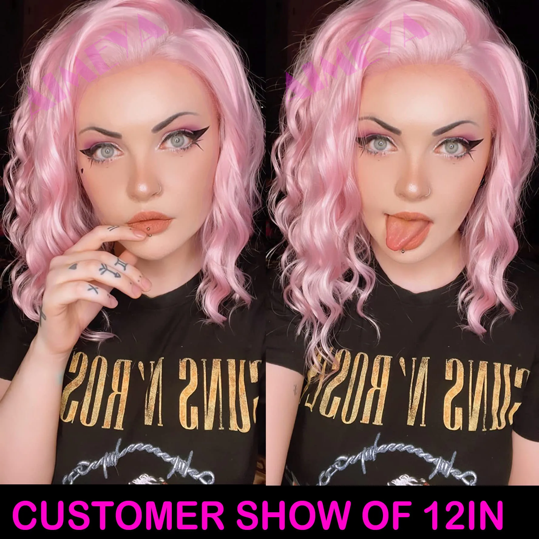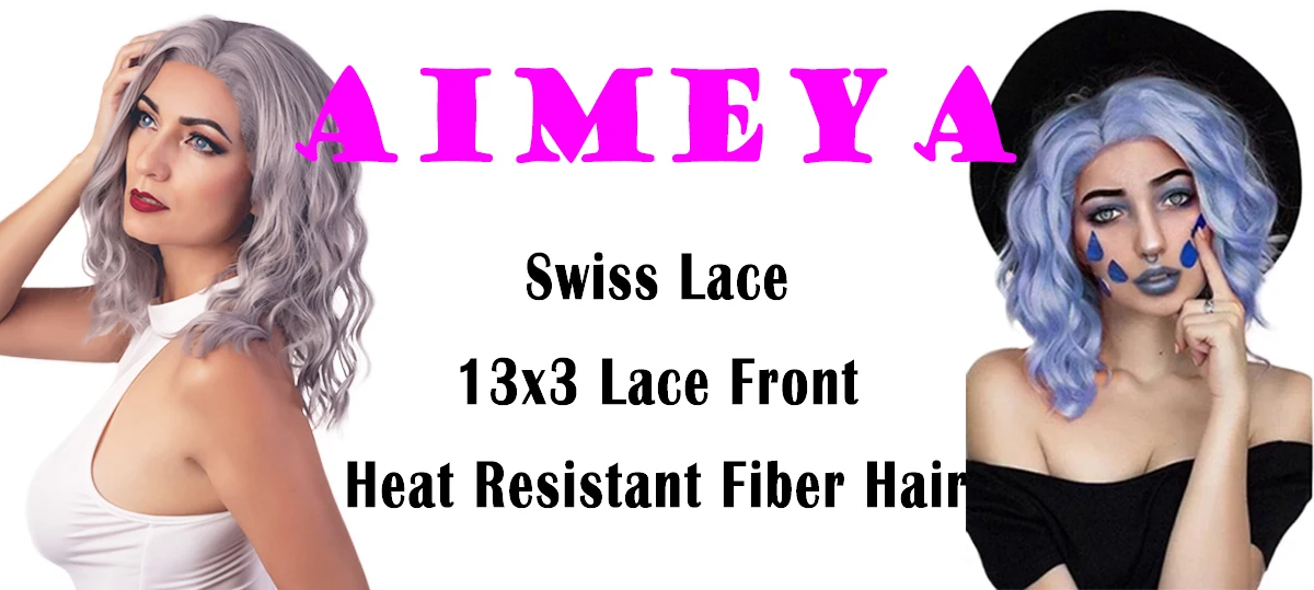 AIMEYA Synthetic Lace Front Wigs Short Bob Wig for Women Silver Brown Pink Blue Color Synthetic Lace Wig Cosplay Short Wig