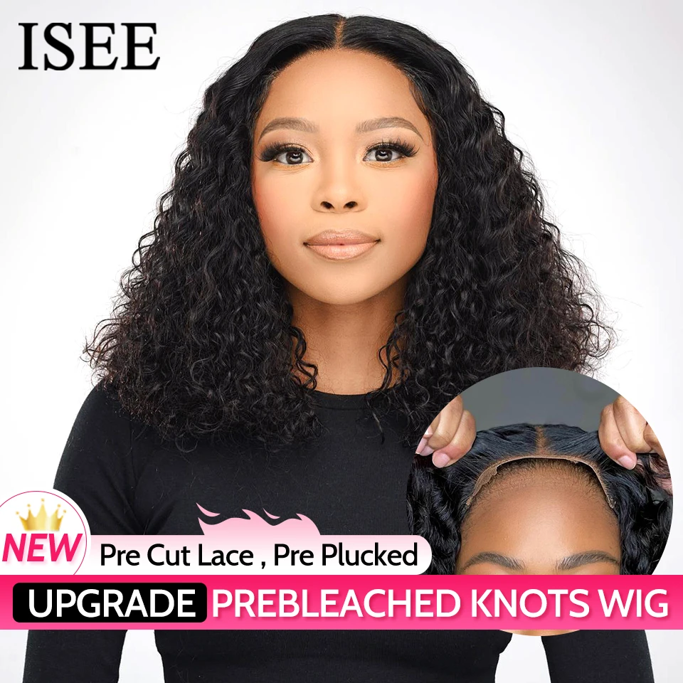 Glueless Wig Human Hair Wear And Go Bob Wig Ready To Wear Water wave Preplucked Human Wigs HD Lace Pre Bleached ISEE Hair