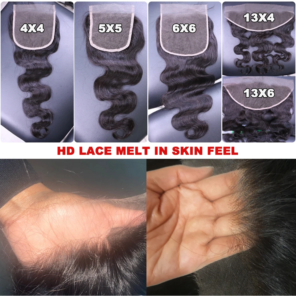 Real HD Lace 13x6 13x4 Frontal 4x4 5x5 6x6 7x7 Closure Body Wave / Straight Pre Plucked Small Knots Human Raw Hair Queen Hair
