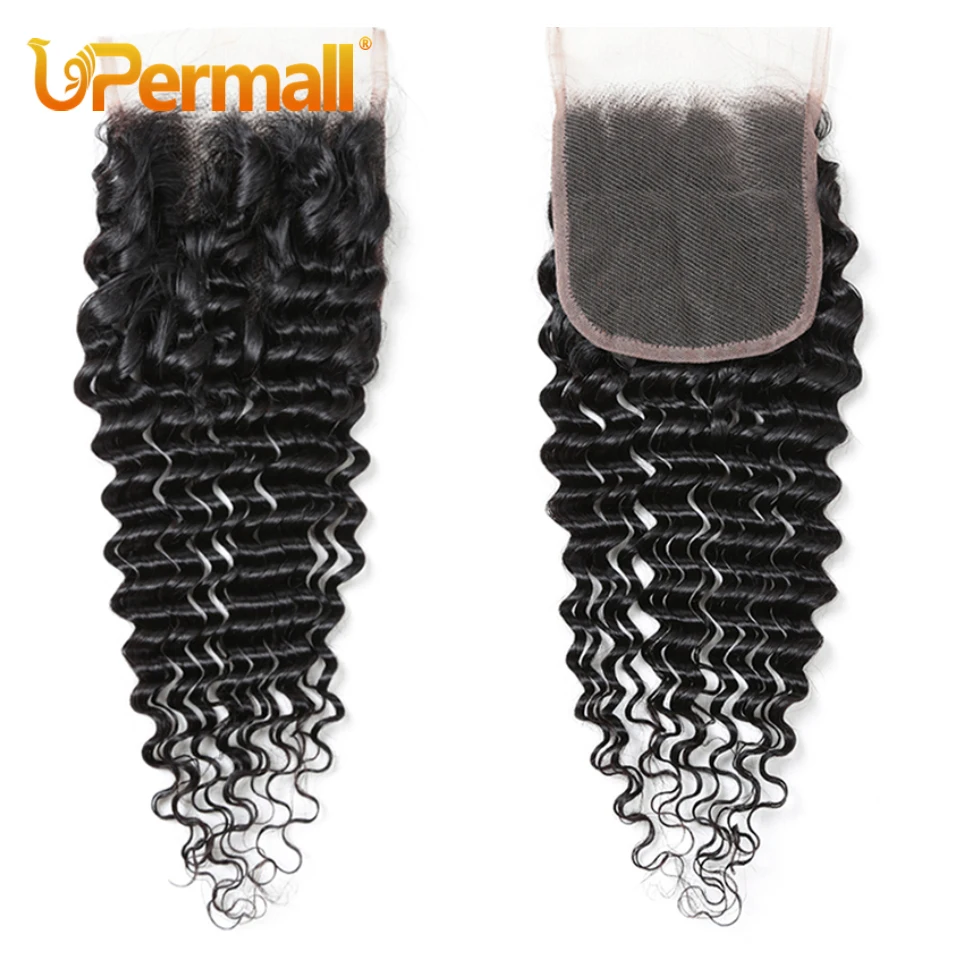 Upermall Deep Wave HD Transparent 13x4 Lace Frontal & Swiss 4×4 Closure Brazilian Remy Human Hair Pre Plucked Can Be Bleached